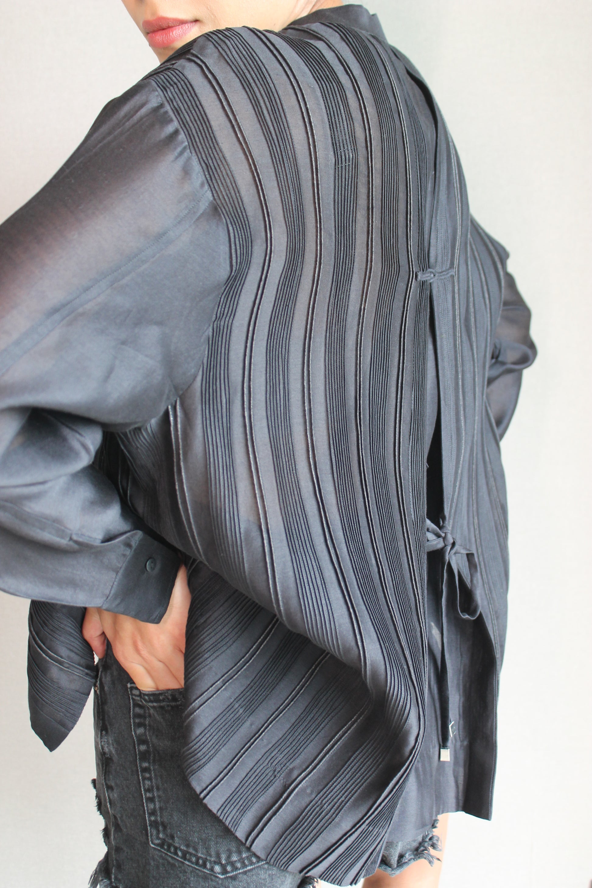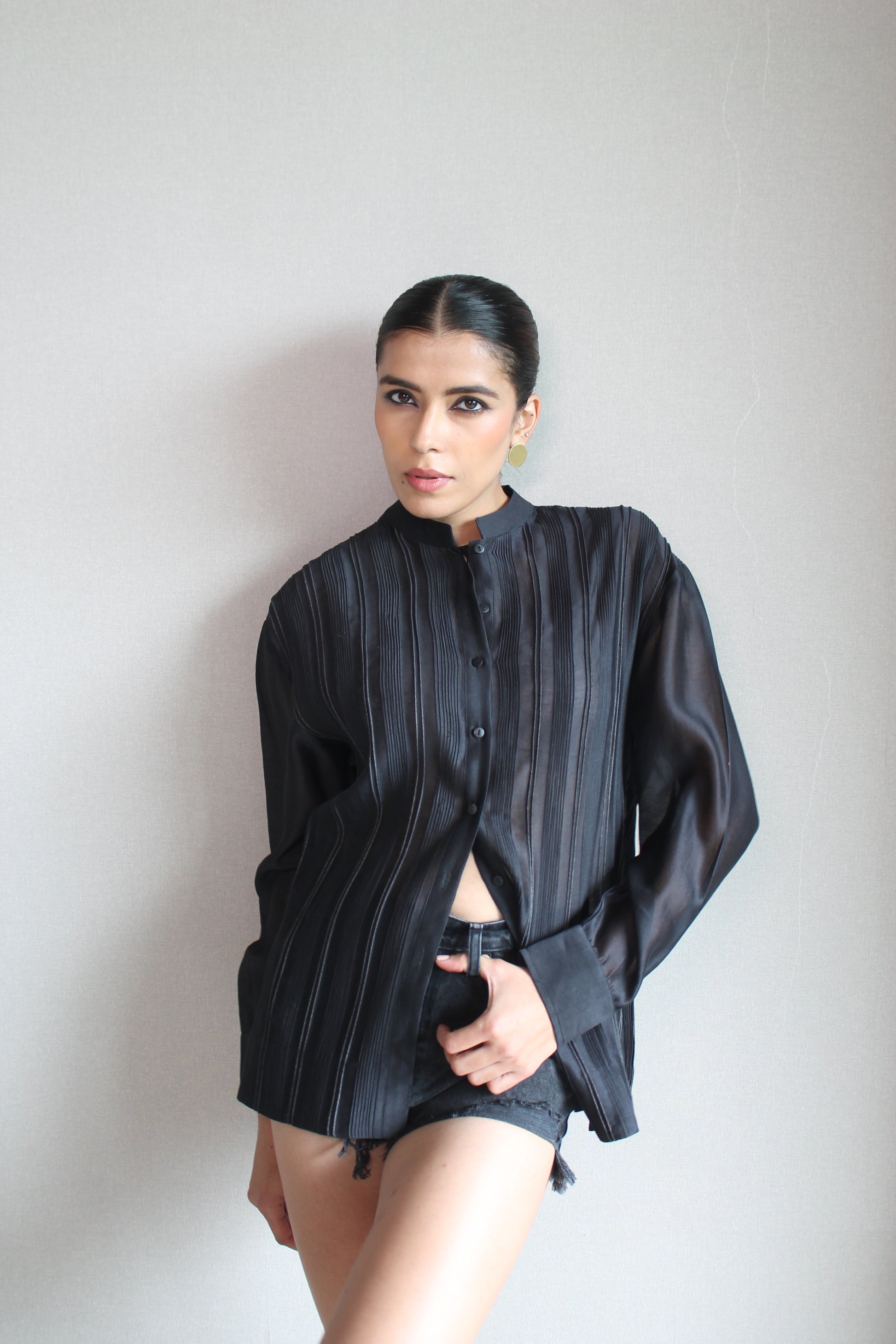 Chanderi shirt with pintak detailing and a back open design with strings.