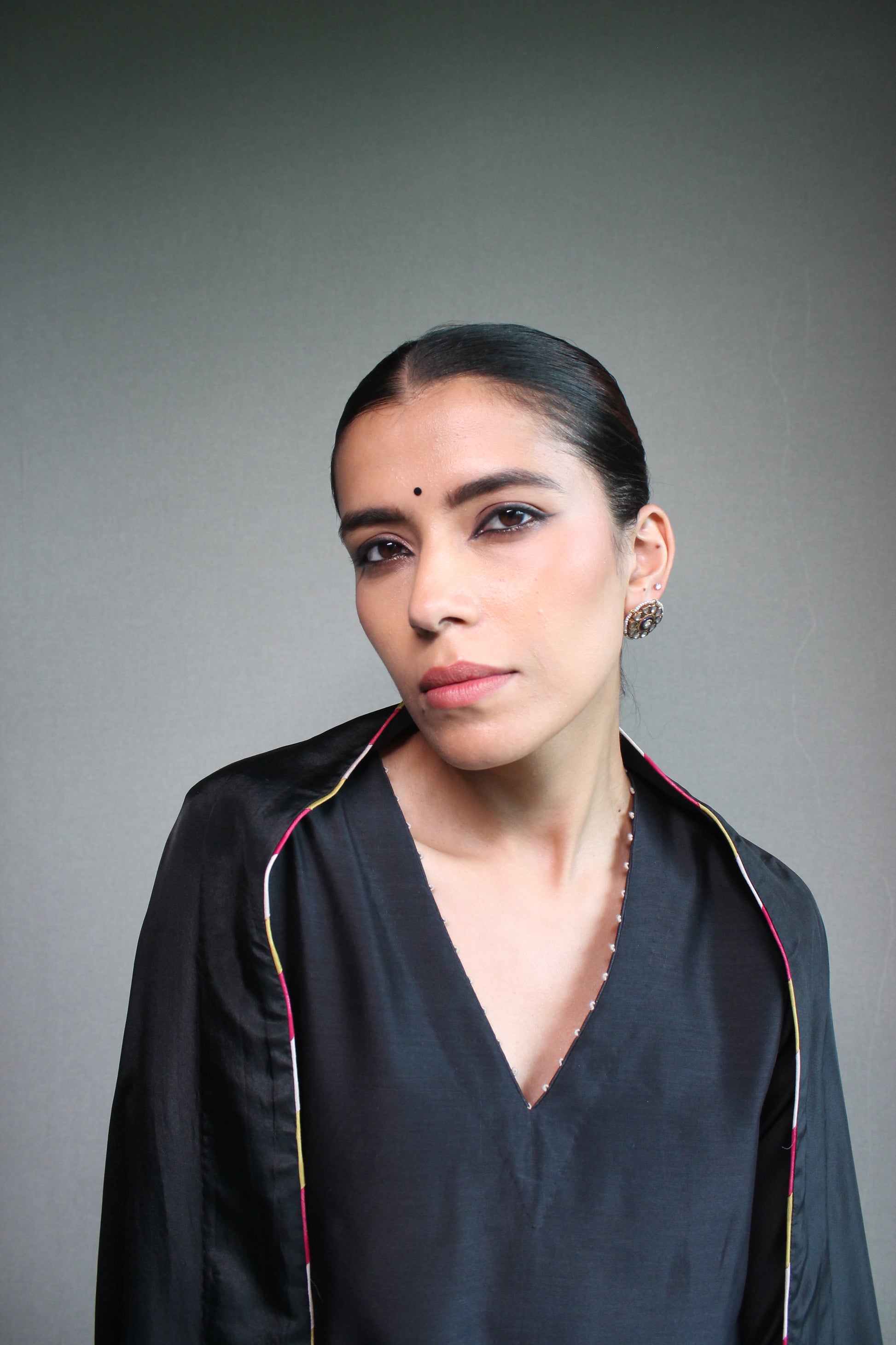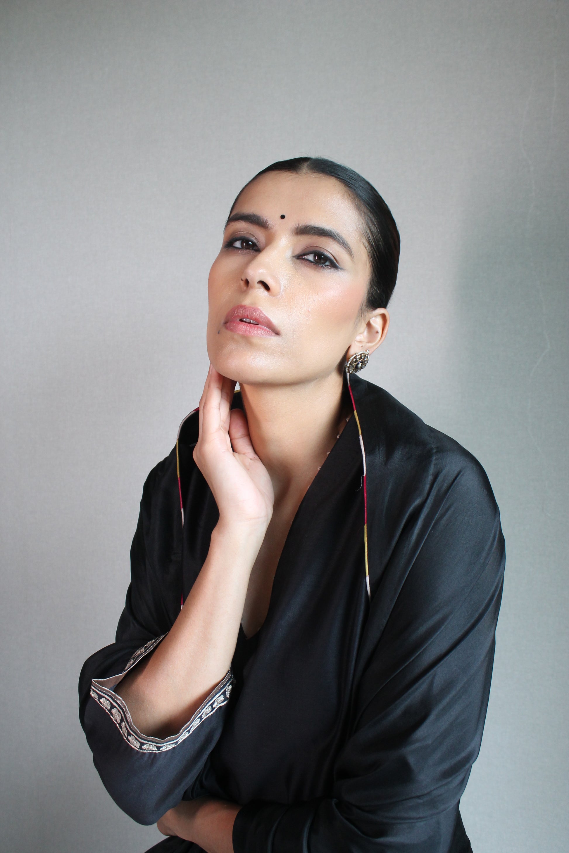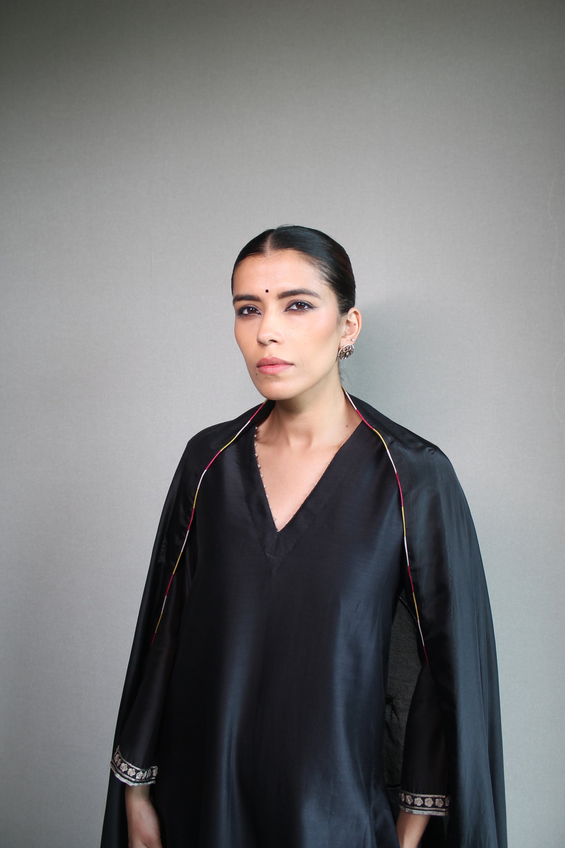 Straight cut kurta set in chanderi with hand embroidery. Paired with chanderi trousers and a silk dupatta with intricate hand embroidery.
