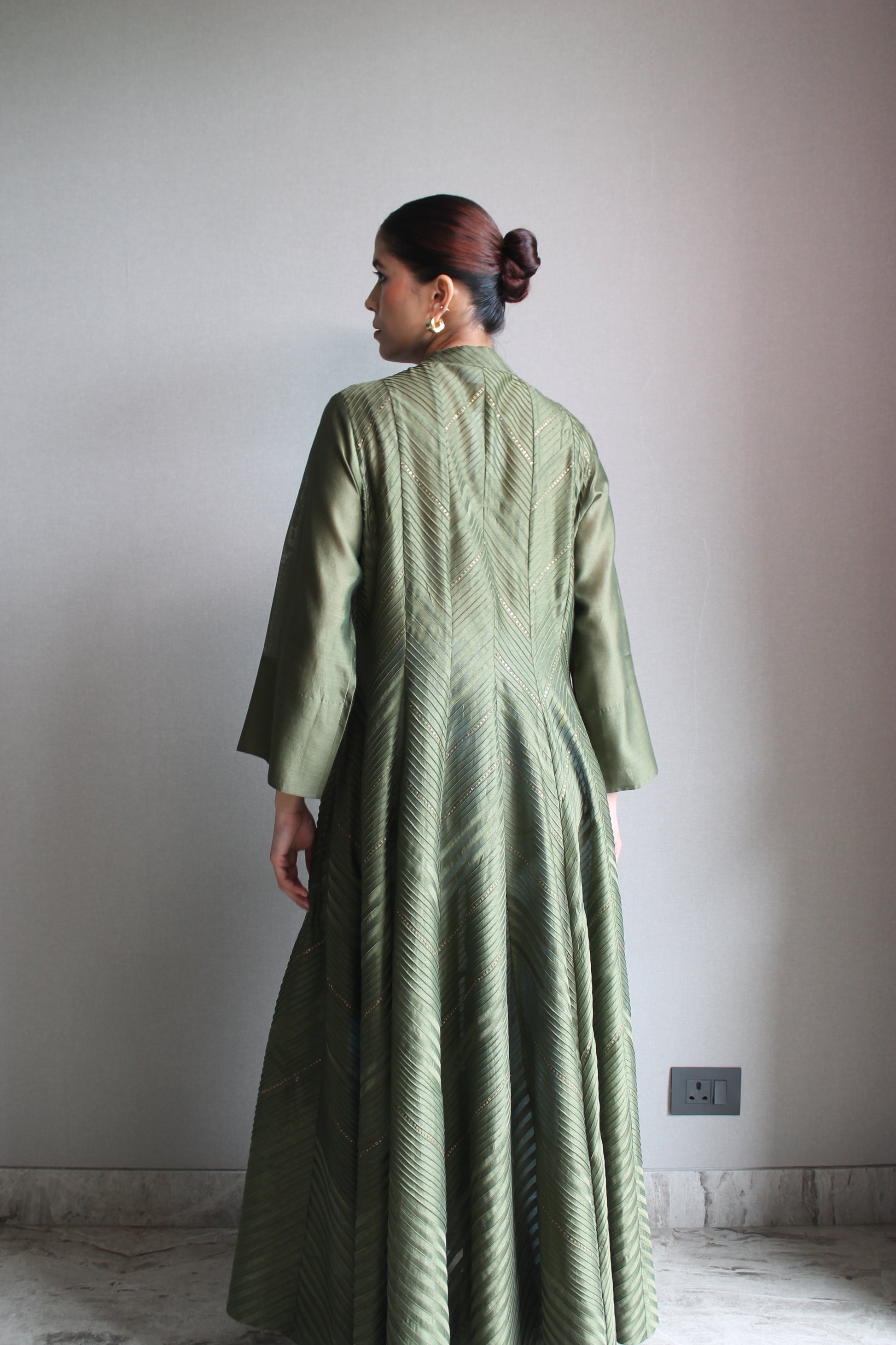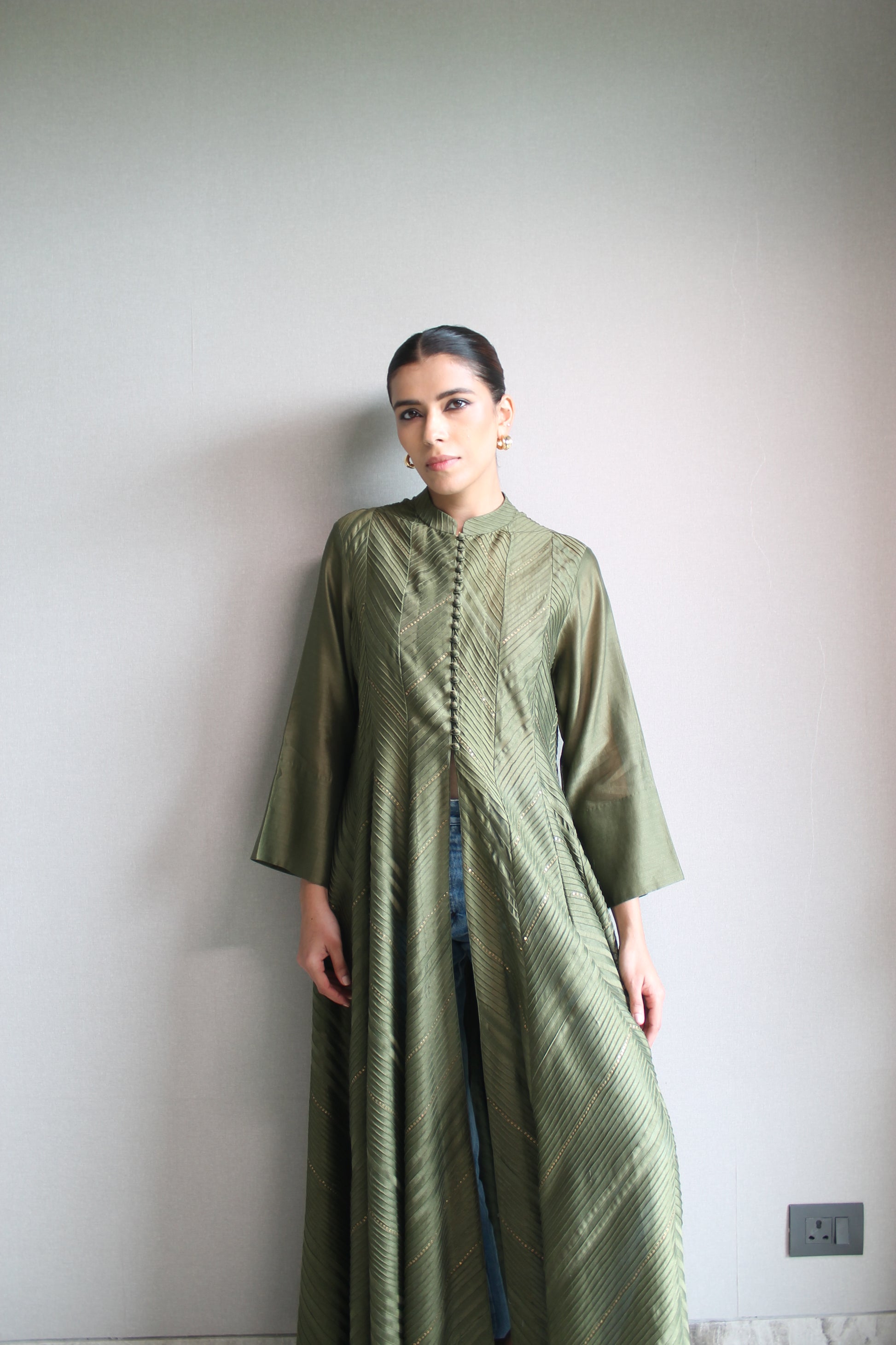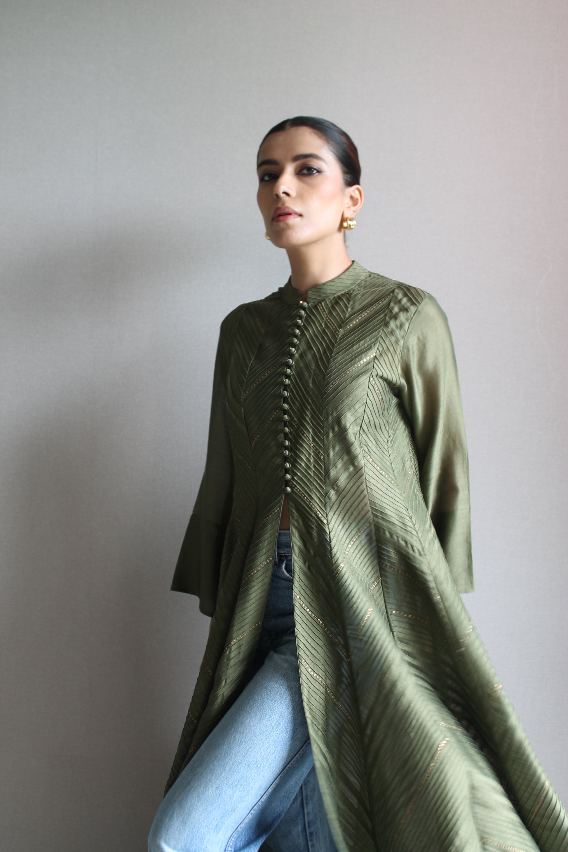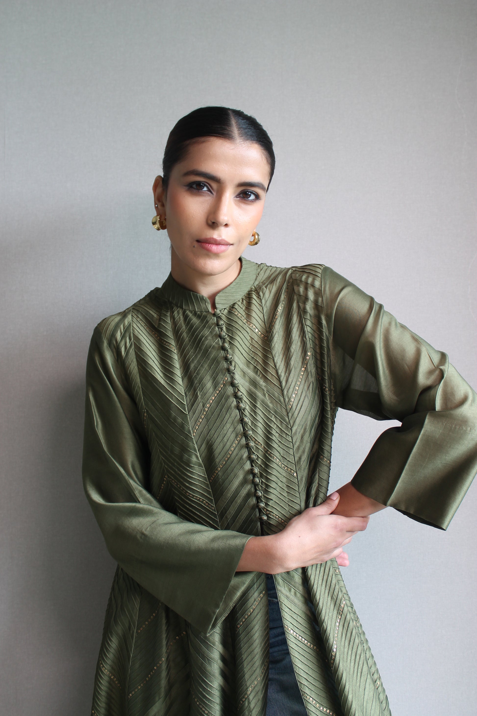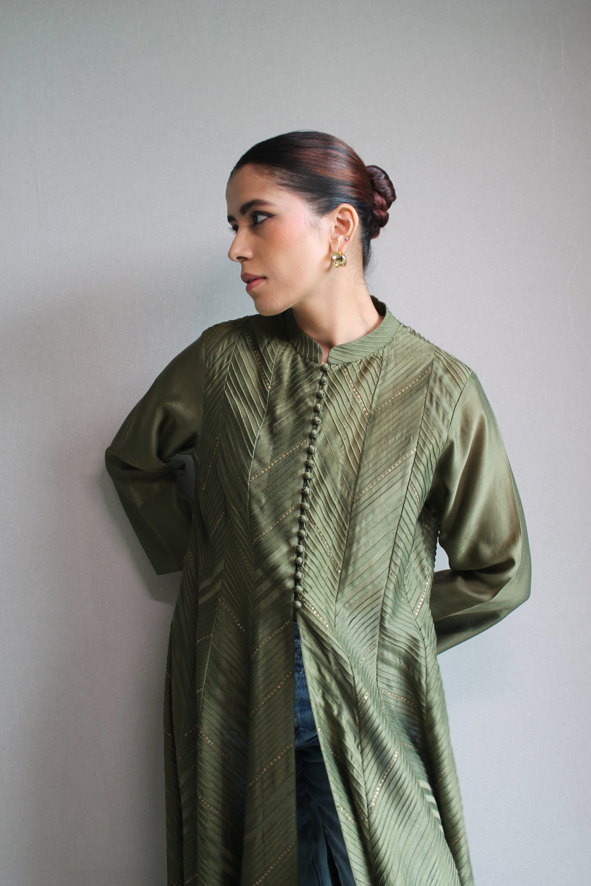 Buttoned kurta with pintak detailing in chanderi.