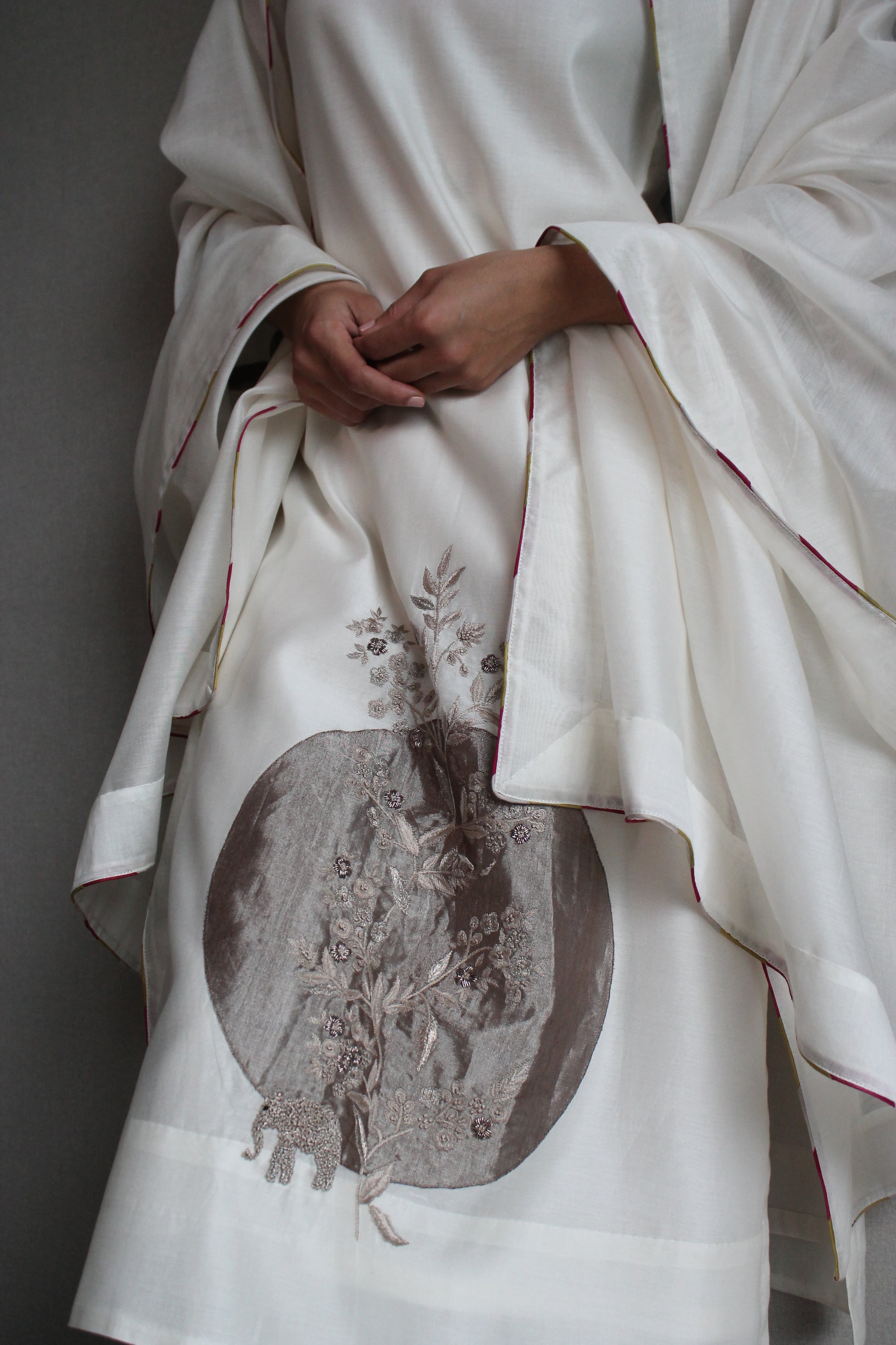 OFF WHITE HAND EMBROIDERED MOON KURTA